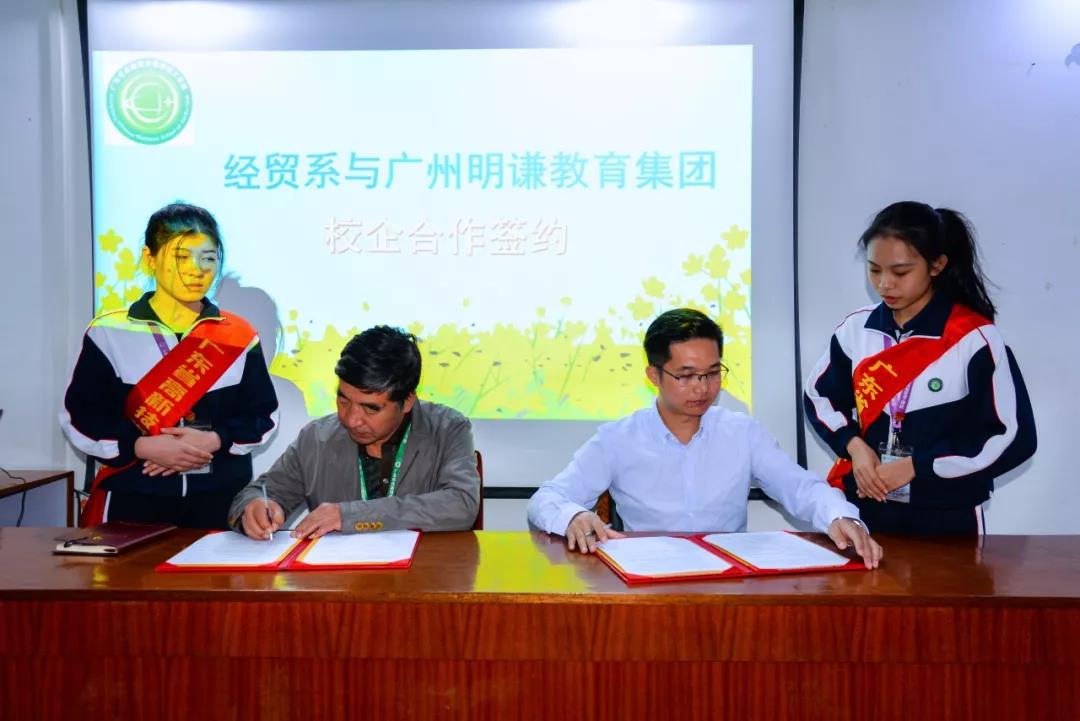 廣州明謙教育集團龍煥輝總經(jīng)理,幼兒園園監(jiān)陳楚越園長、陽光幼兒園陳海燕園長,教務(wù)處田春元處長、經(jīng)貿(mào)系向莎莎主任、經(jīng)貿(mào)系幼兒教育組林紅霞老師、經(jīng)貿(mào)系幼兒教育專業(yè)林佳峰老師、17幼師(五年制)班班主任孫啟磊老師、經(jīng)貿(mào)系邢夏盈老師出席了簽約儀式。