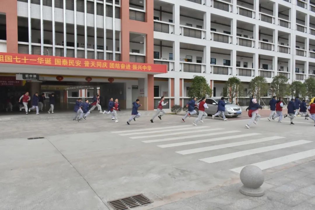上午十點整,隨著警報聲的響起,消防演練正式開始。在領導的指揮下,各工作小組按照預案迅速到達指定位置,開始引導學生用濕毛巾捂住口鼻,從教室迅速撤離到操場集合。隨后,各班清點人數,逐級匯報,確保所有學生都安全撤離到了操場。